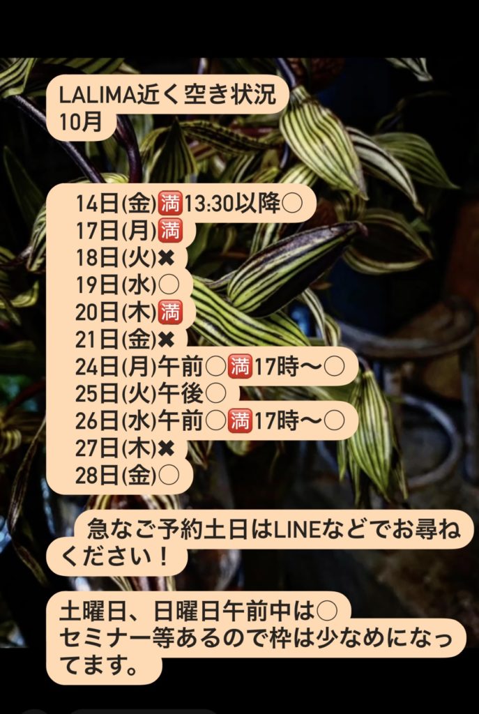 lalimaセラピーリラクゼーションにご来店ありがとうございます😊