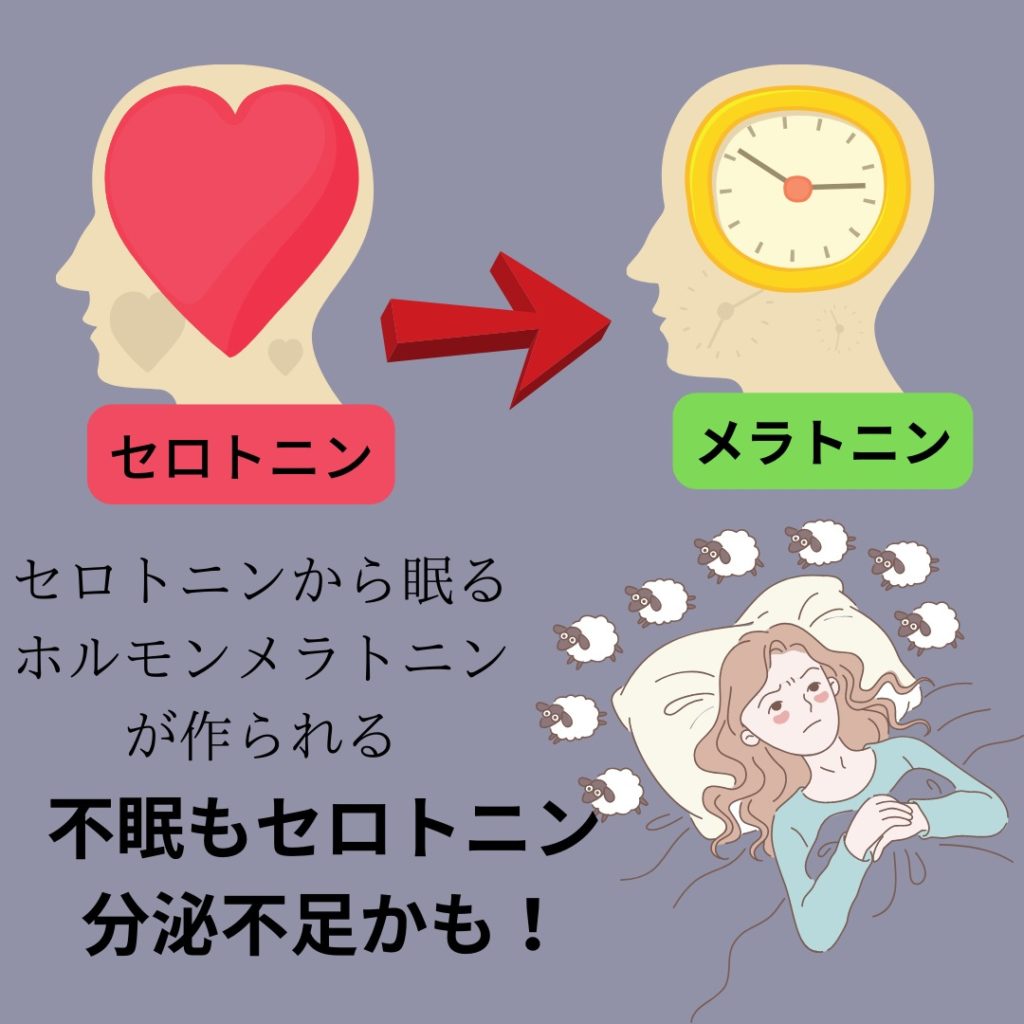 睡眠ホルモンのメラトニンはセロトニンから作られるので不眠にも繋がる事があります。