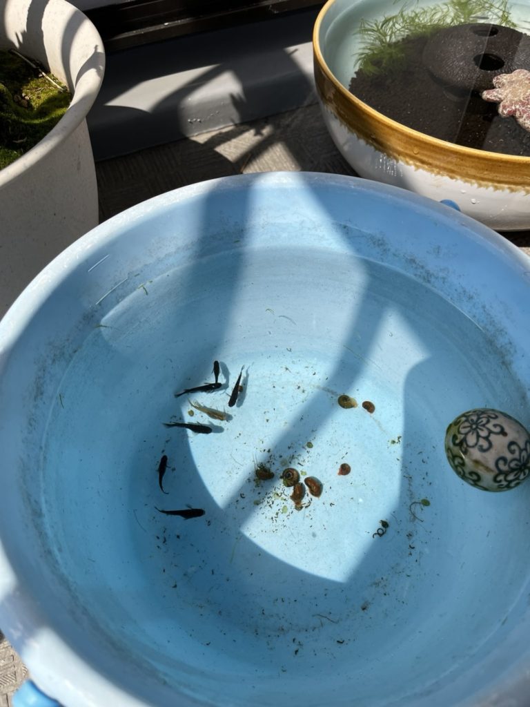 さあ、あたたかくなってきたのでメダカ達の鉢を綺麗にしております🎶