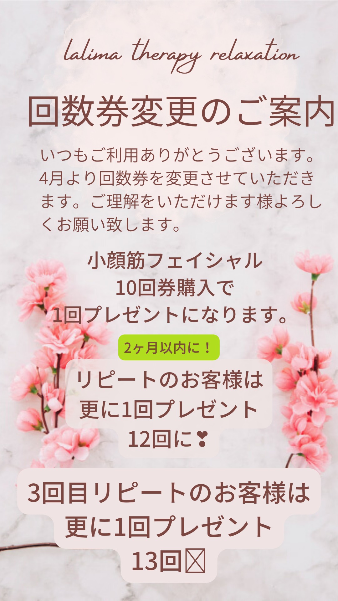 lalimaで大人気の❣️小顔筋フェイシャルの回数券が少し変更になります。