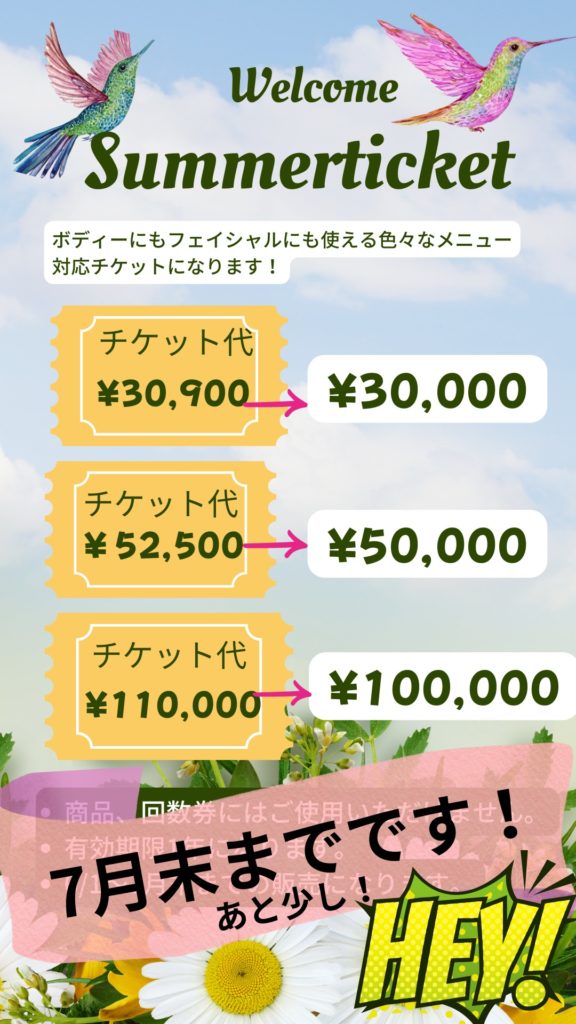 SUMMERチケットの期限が7月31日までになります。お買い忘れあればお急ぎください!