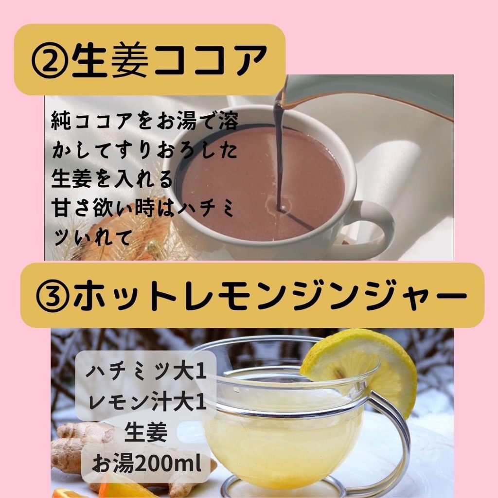 “生姜”と”ココア”には、血行をよくする以外にも体を中から温めるポカポカ効果もあるので、一石二鳥の効果が見込めそうです。