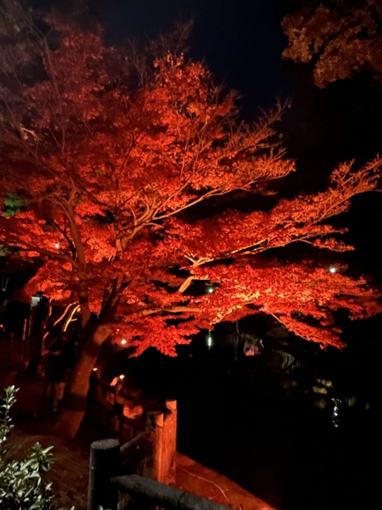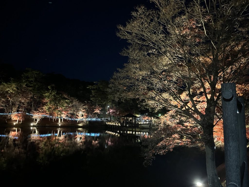 東公園は昼の紅葉も有名ですが、夜は一段と特別です。