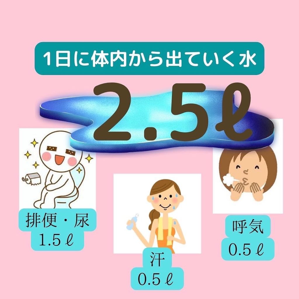 生きてるだけで1日2.5ℓの水分が出て行くんですね‼️