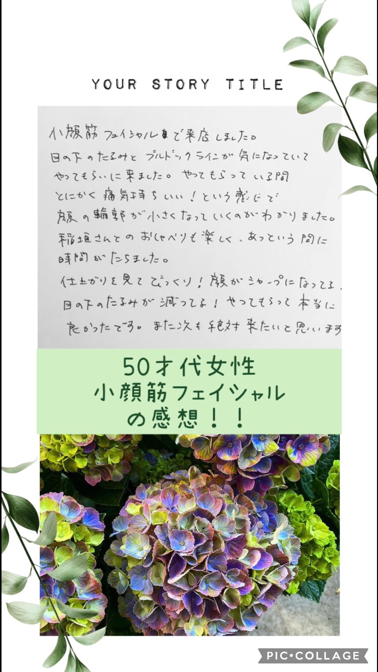 お顔も整い肩こり首コリも整って一石二鳥、三鳥で。お値段以上フェイシャルです。