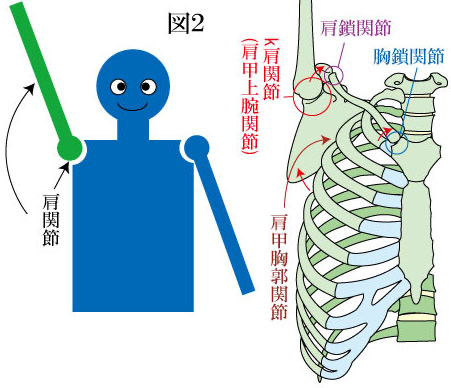 腕があがるのは、下の図2の様に、肩の関節だけてくるっと上がってるのではなくて。。。